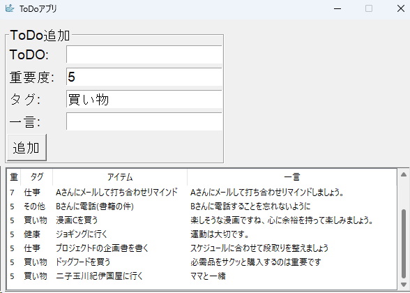 普通のToDoアプリ(GUI版)プログラムです。todo_app.py