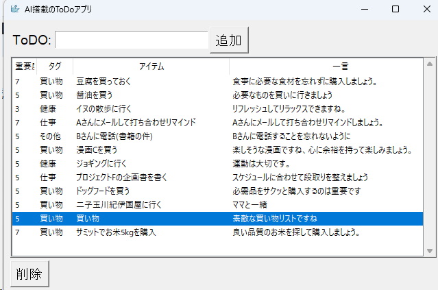 AI搭載のToDoアプリ(GUI版)プログラムです。todo_ai_app.py