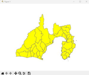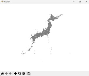 geopandas_test.pyを実行して日本地図がうまく表示されました。約3~4分かかった